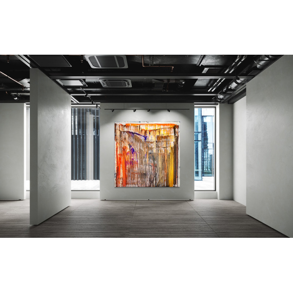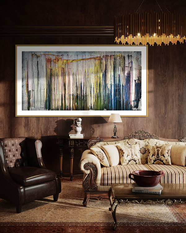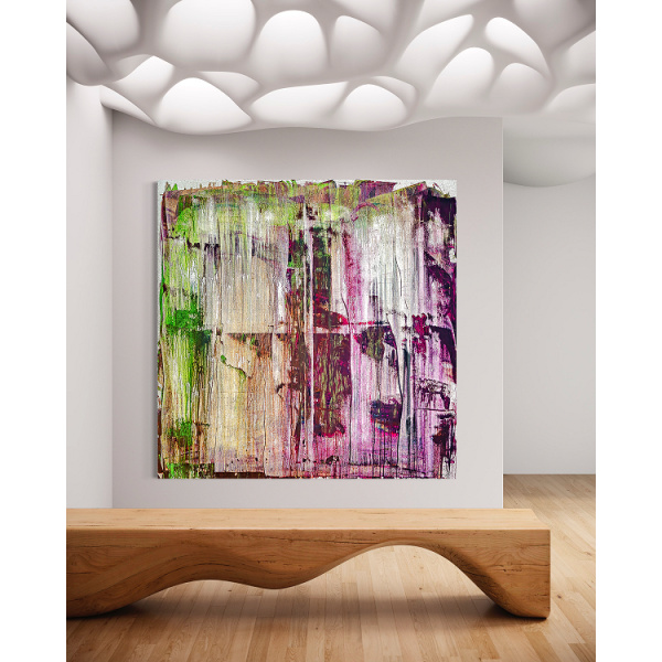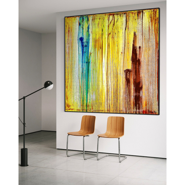 Quadro dipinto con la tecnica del combine painting con colori acrilici su tela di dimensioni 100 cm x 200 cm.
